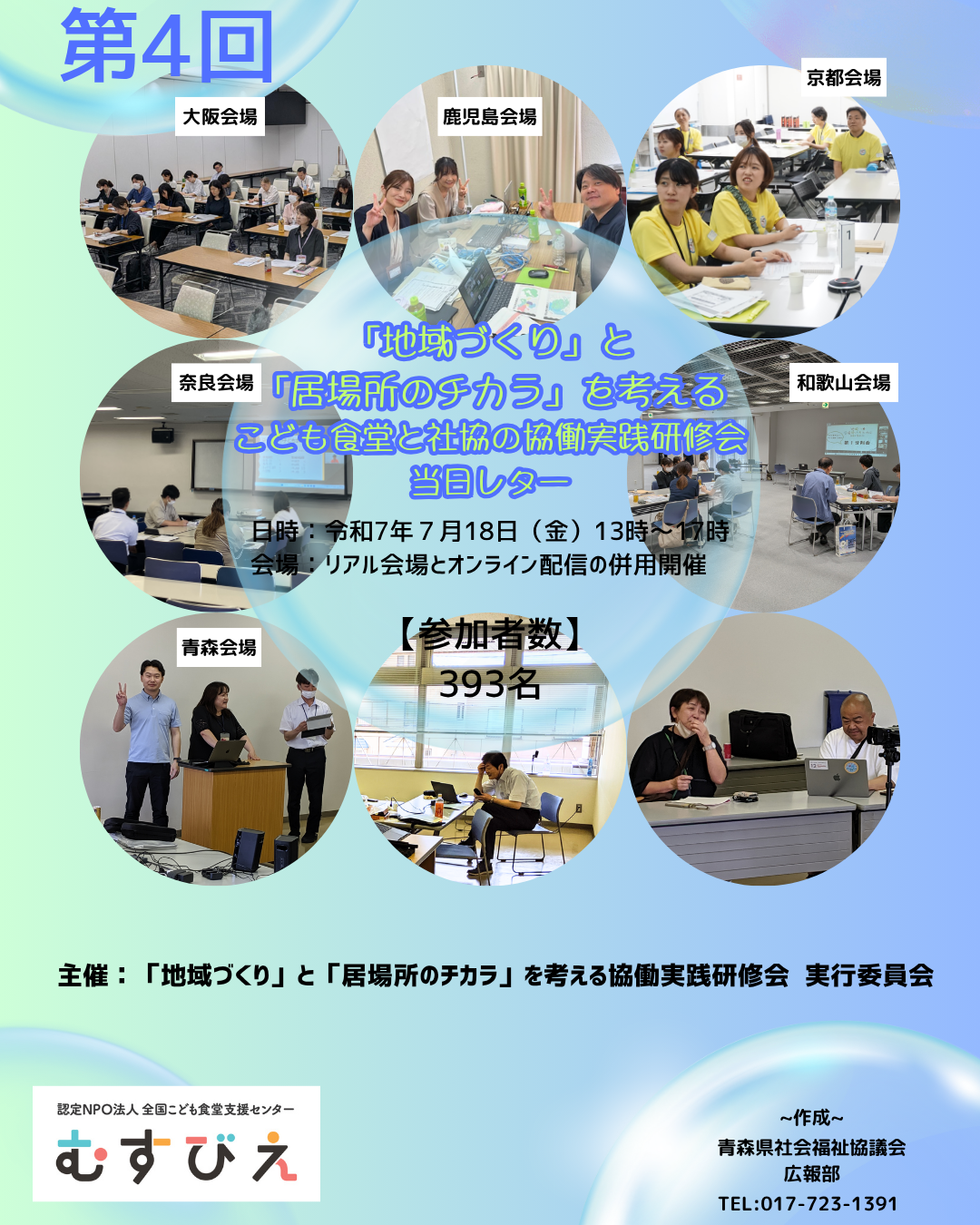 全国10会場とオンラインで開催し、393人にご参加いただきました。青森県社協は、配信基地の役割を担い、青森県から全国各地域の社協マンに熱い思いをお届けしました。