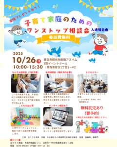 法律問題や発達、不登校や非行の問題などの専門家による無料の相談会「子育て家庭のためのワンストップ相談会」を10月26日にアスパム1階イベントホールで開催します。